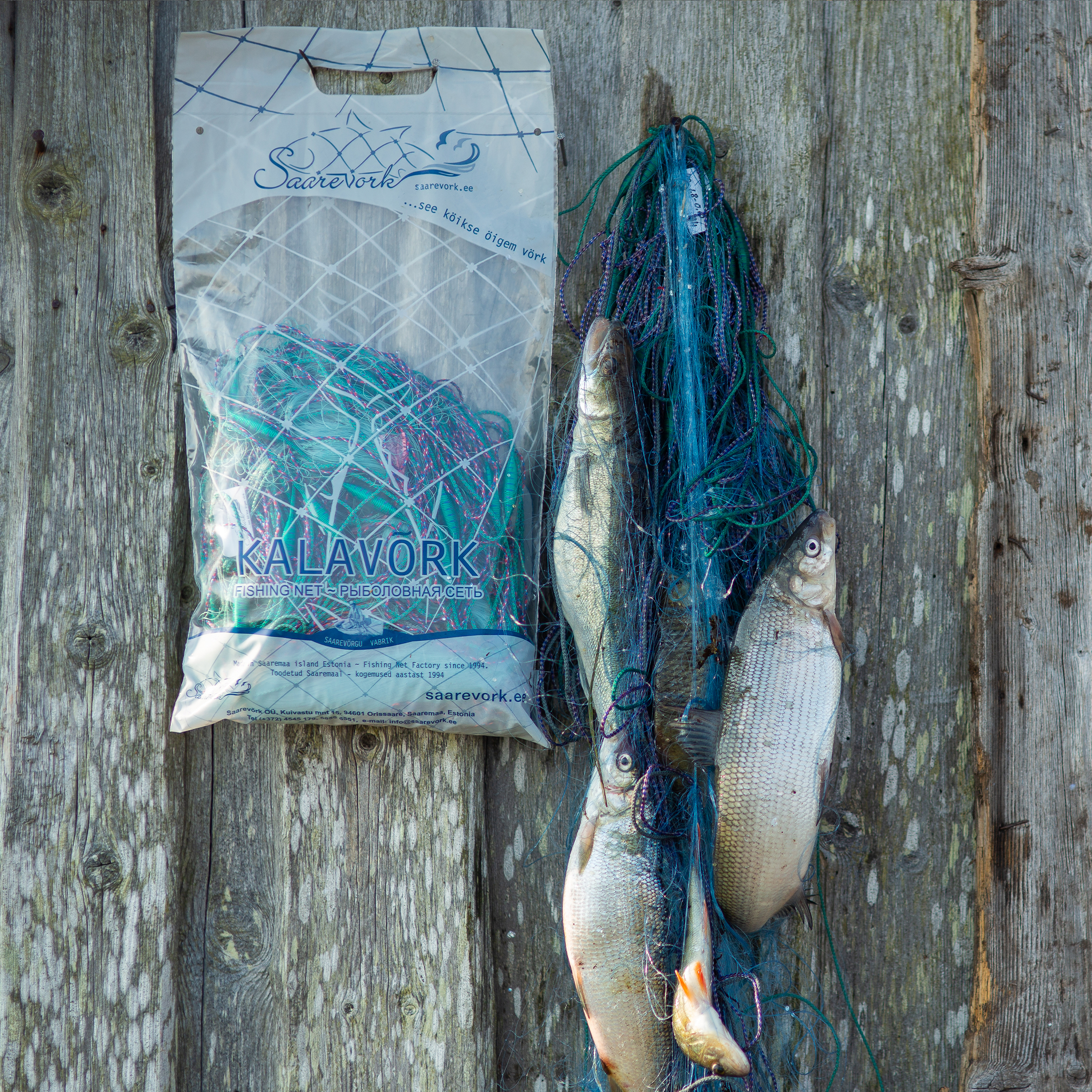 Kvaliteetne kalavõrk Saarevõrk OÜ toodangust. Nakkevõrgu monokiust võrgulina värvus varieerub meie sortimendis hallist ja helesinisest, tumesinise värvuseni, kui ei ole öeldud teisiti. Meie võrgu seadmist püügile hõlbustavad oma jäigema struktuuriga punutud 1/2monofil raskuspael ja 1/2monofil abipaelad. Jätkuva kande võrgule tagab tugevast ja vett mitteimavast materjalist ujukitega roheline, siniste triipudega ujukinöör. Võrgu mugavalt suured rakendusaasad aitavad meie toodetud võrku paremini käsit- leda vette lastes ja veest välja võttes. Kõik nöörid ja rakendus on meie endi Saaremaa vabriku aastatega väljatöötatud kvaliteetne toodang. Võrk kannatab survepesu.